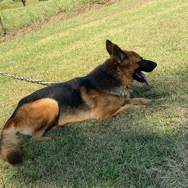 Skye is from a breeding of our own Josie von Godwinhaus and Kane von der Godwinhaus. She received her STAR puppy award from AKC and she has completed obedience training. She is a very smart dog with lots of drive.